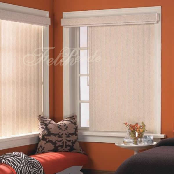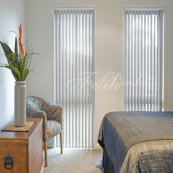 Dikey perdeler pvc,kumaş ve alüminyum olarak uygulanabilir.Pvc ve alüminyum olanı 89mm genişliğinde paneller halindedir.Kumaş dikey perdeler 89mm ve 127mm olarak yapılabilir.Genelde geniş ve yüksek camlarda kendine yer bulur.Güneşe yön vermede en üst düzey perde sistemi diyebiliriz,çünkü en az 8cm olan iki bant aralığını kullanarak 180 dereceye kadar zincir yoluyla çevirebiliriz.Temizliği daha kolay olduğu için pvc dikey daha çok tercih edilmektedir.Motorlu olarak da uygulanabilirler.